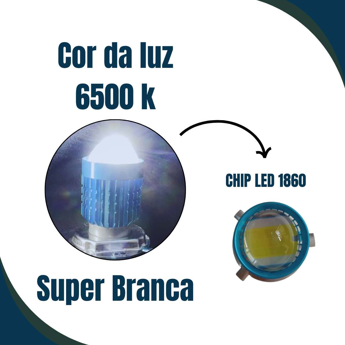 Luz super branca 6500K para máxima visibilidade