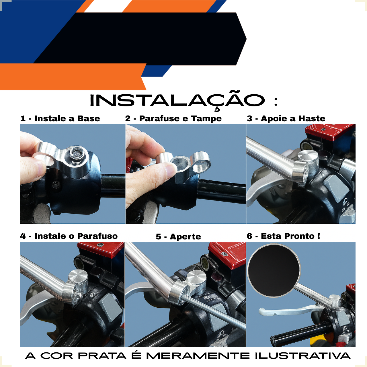 Honda, Yamaha, Suzuki, Dafra, BMW, Kawasaki, Kasinski, Ducati, KTM e muito mais — basta ter encaixe universal com rosca 10mm.