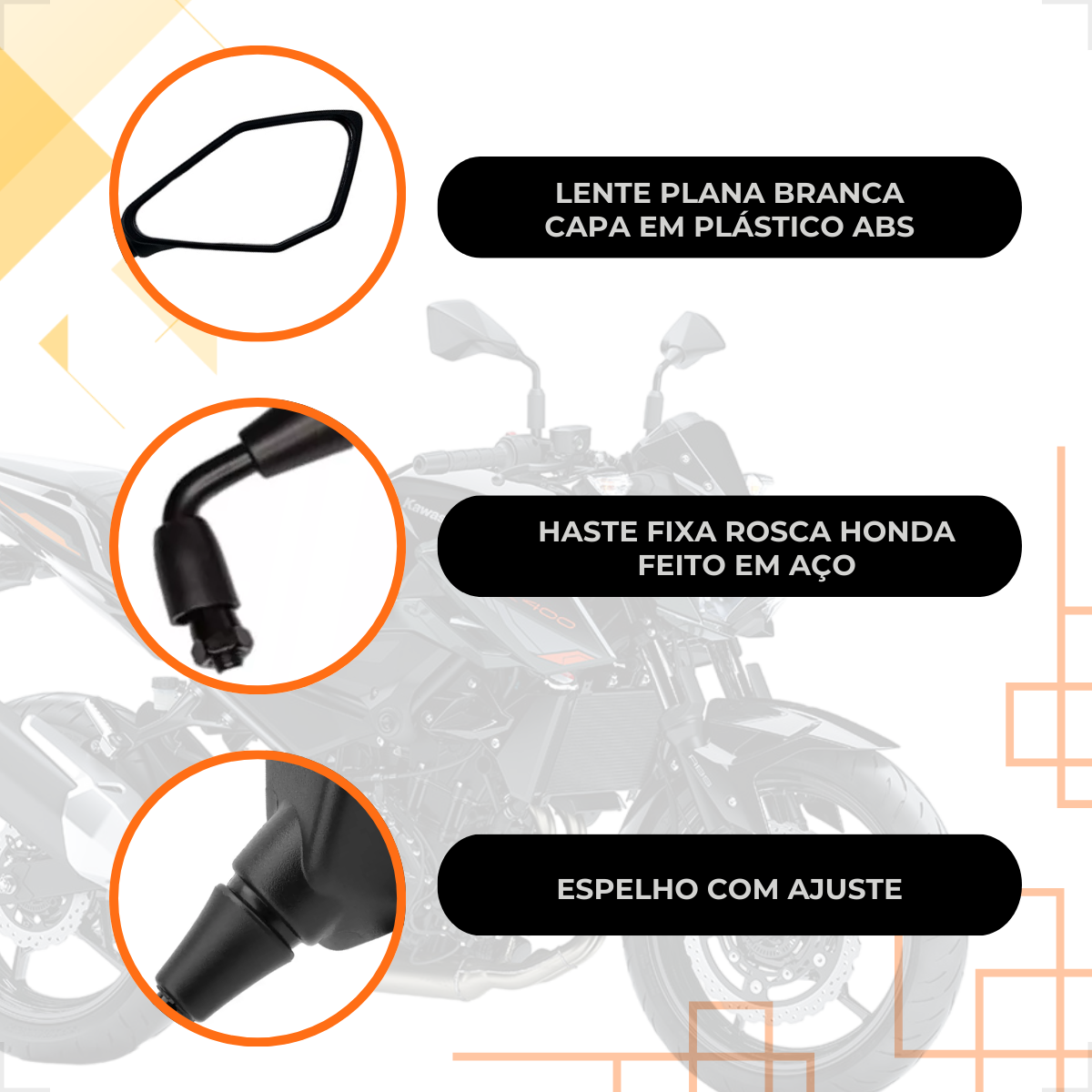 O conjunto combina o Retrovisor Z400 estilo Honda com 2 pares de piscas P07 Fume em LED de alto brilho, garantindo presença, visibilidade e durabilidade em qualquer trajeto.