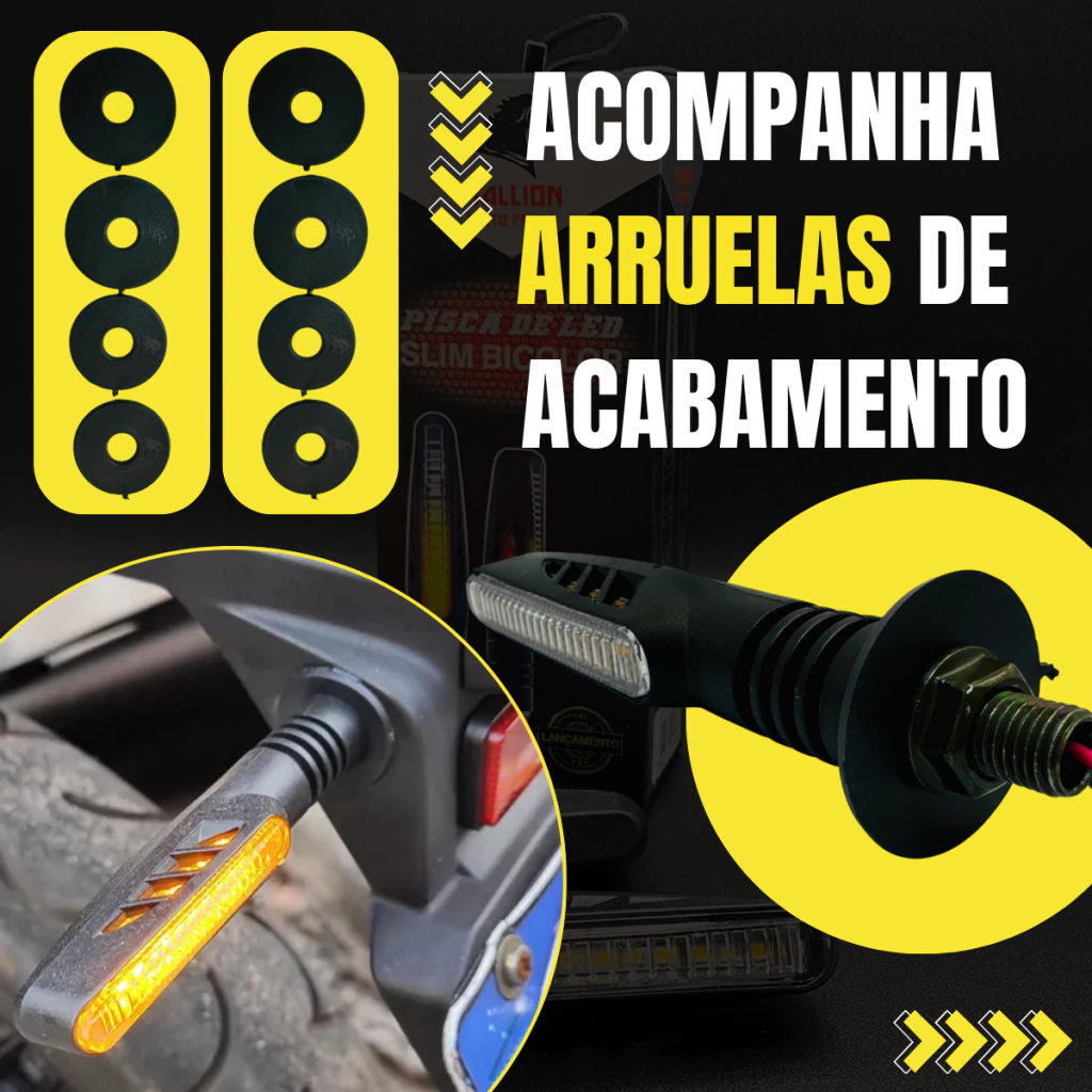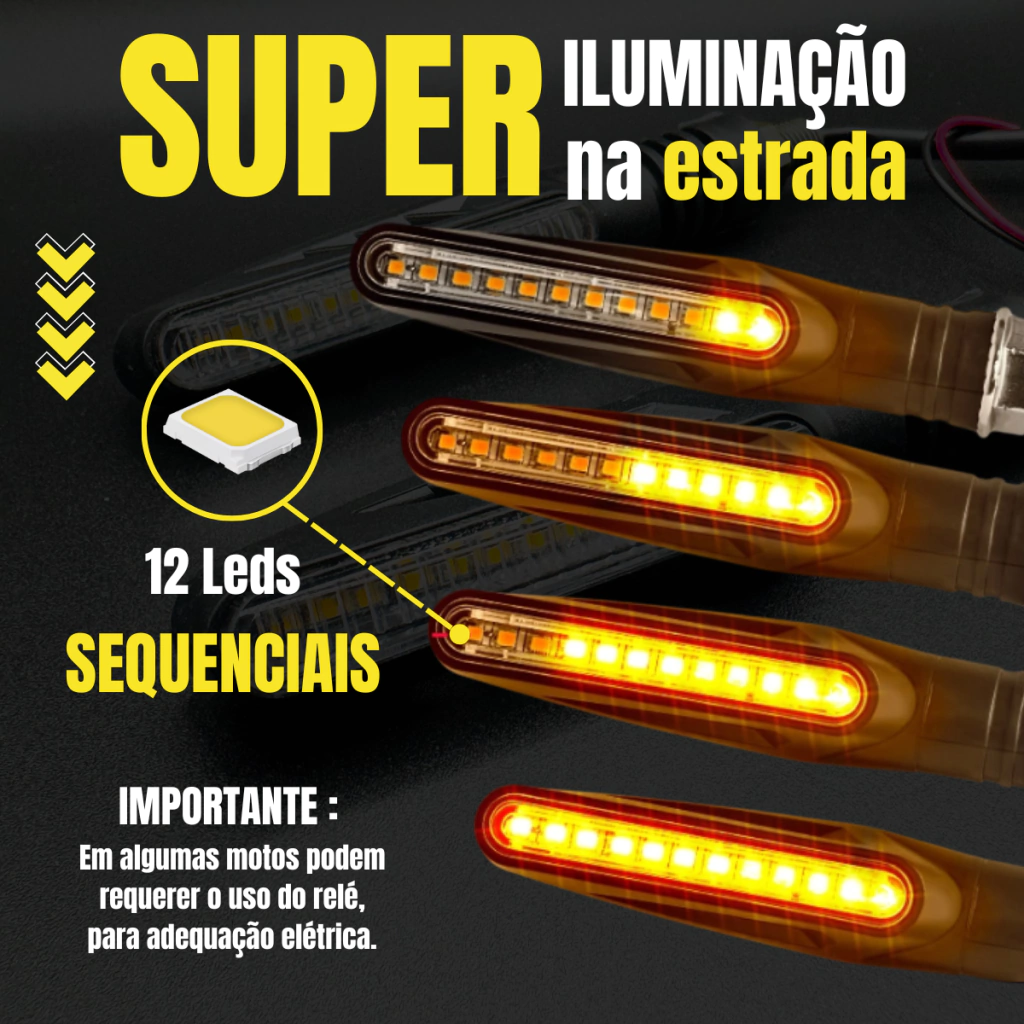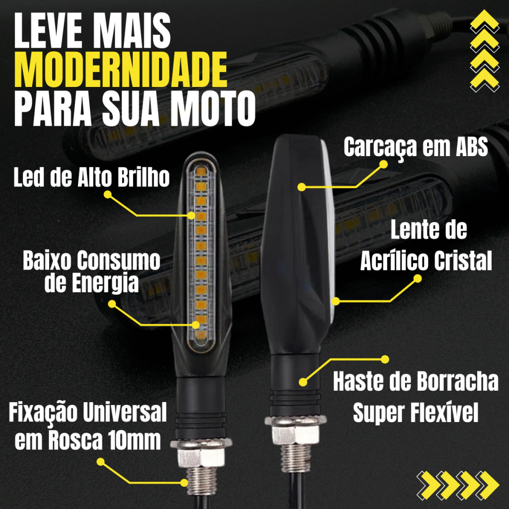 Com design sequencial moderno e encaixe universal (rosca 10mm), é compatível com diversas marcas e modelos: Honda, Yamaha, Suzuki, Dafra, BMW, Kawasaki, Ducati, KTM, Kasinski e muitas outras.