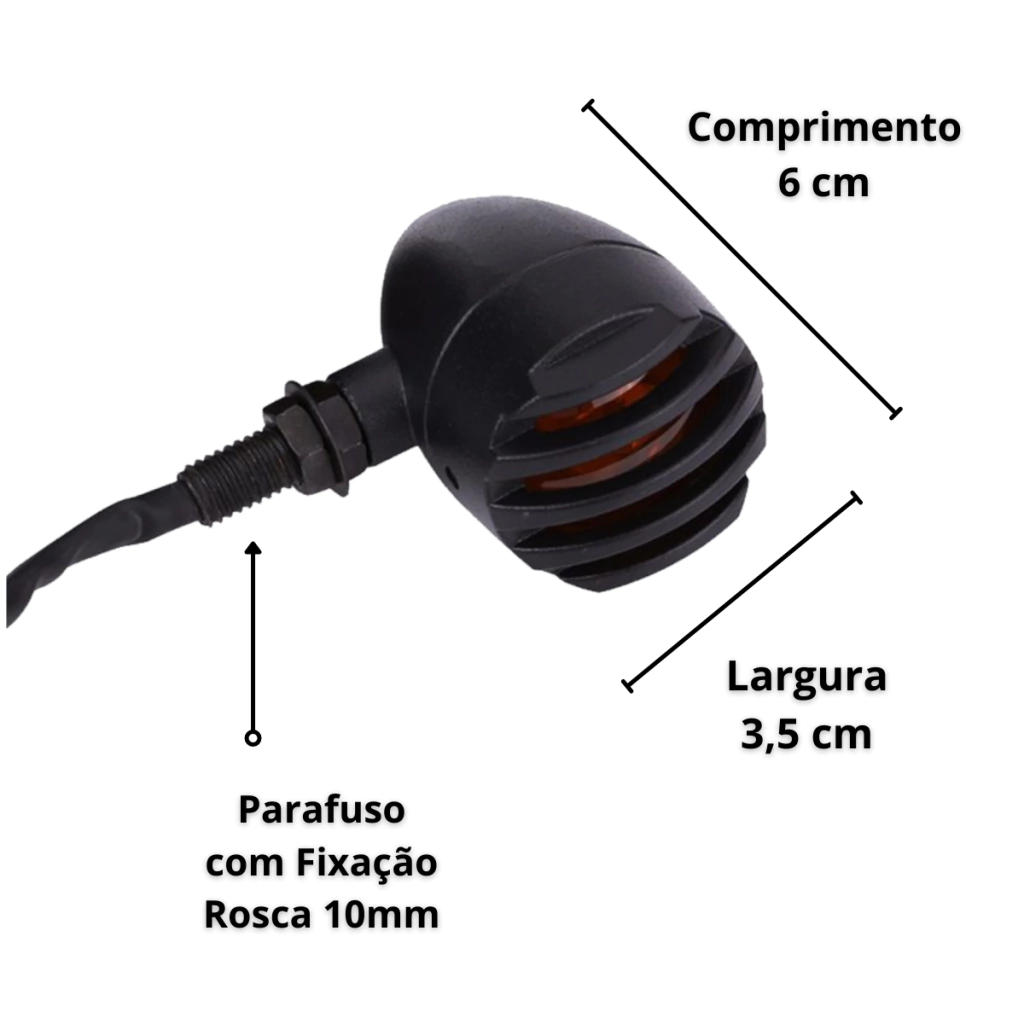 Com design inspirado no visual Café Racer e Custom, os piscas dão aquele ar retrô de pista que combina com Bobber, Chopper, Shadow, Harley, Ducati, BMW, Yamaha, Honda, Suzuki e muito mais. Fácil instalação em motos 12V, fios de 20 cm e ligação padrão positivo/negativo — sem complicações.