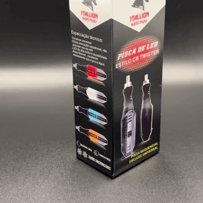 Chega de piscas sem graça! Com o Kit de Piscas P26S Stallion, você garante mais visibilidade no trânsito e ainda adiciona um toque esportivo e moderno ao visual da sua moto.