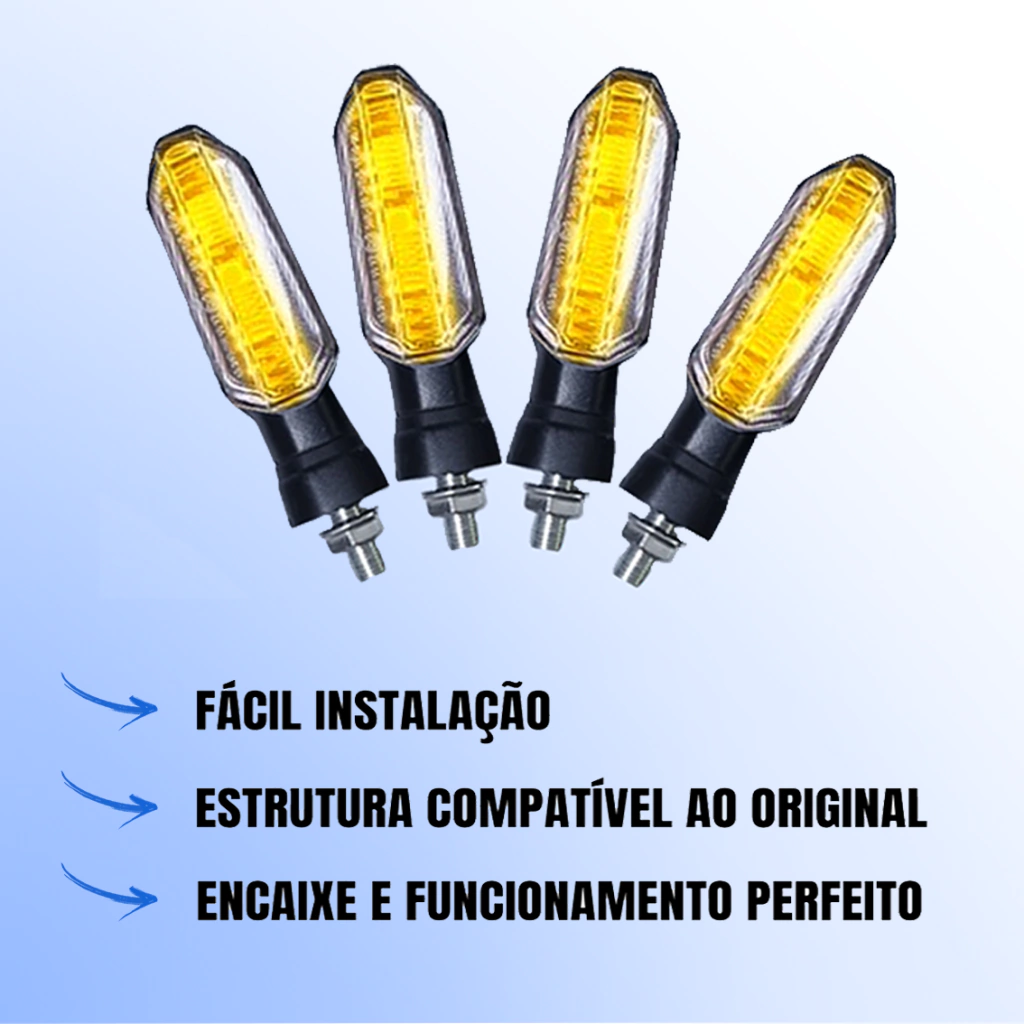 Fabricados com lente de acrílico transparente reforçado e estrutura rígida em plástico de alta resistência, esses piscas esportivos possuem encaixe universal em rosca 10mm, podendo ser instalados na dianteira ou traseira de praticamente qualquer moto. Com fios de 30cm e tensão de 12V, garantem desempenho seguro e confiável, sem complicações.
