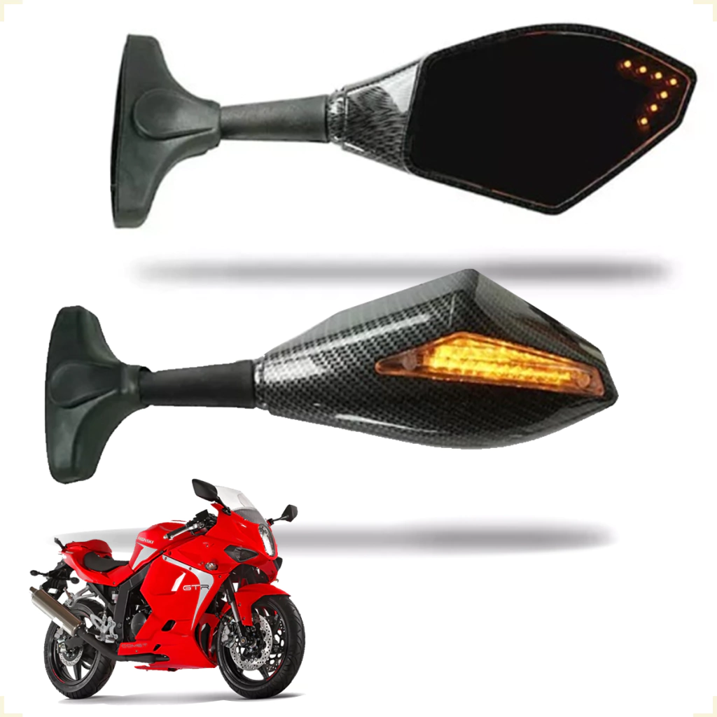 Fabricado em plástico ABS de alta resistência e com base ajustável emborrachada, este retrovisor garante durabilidade e encaixe perfeito. O LED laranja de alto brilho integrado na ponta do espelho proporciona sinalização eficiente, ideal para quem busca estilo e segurança em qualquer estrada.