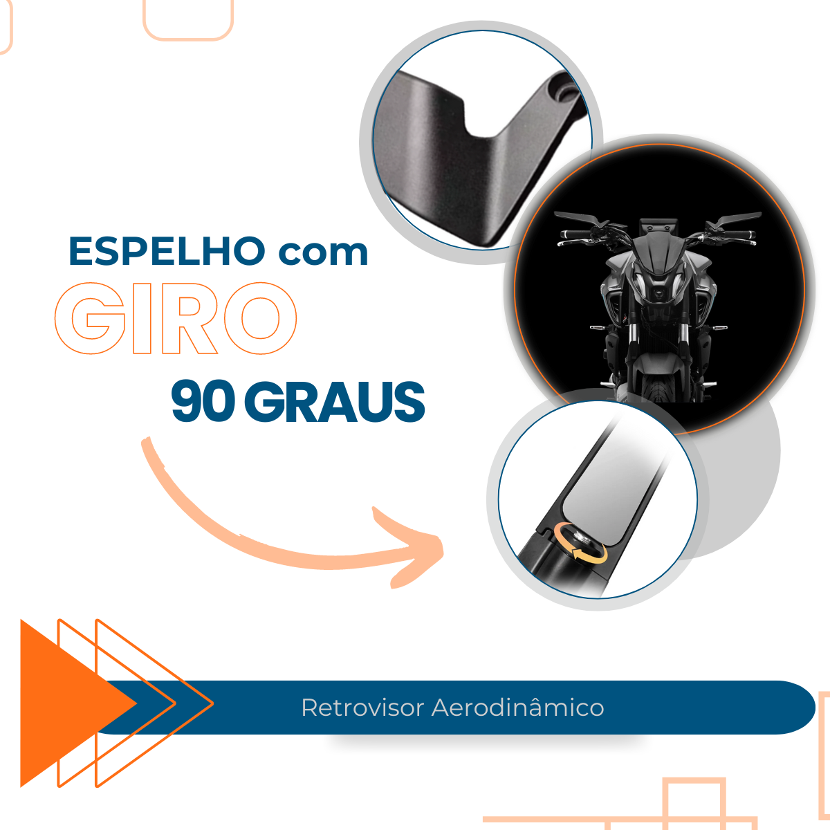 Compatível com a maioria das motocicletas (Honda, Yamaha, Suzuki, BMW, Kawasaki, KTM, Triumph, entre outras), o Retrovisor Asa Airfoil oferece: